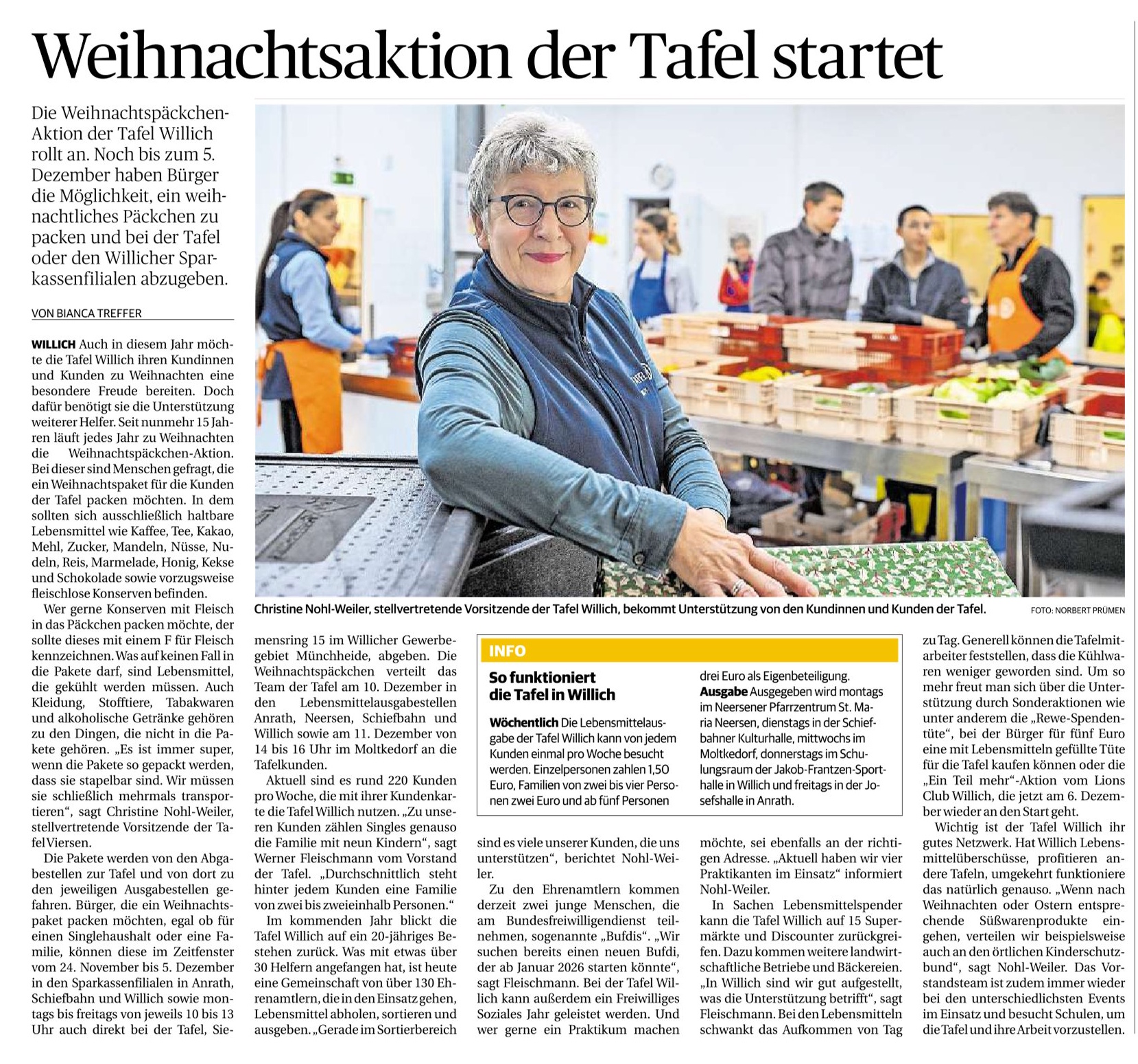 Die Tafel Willich sammelt ab sofort Weihnachtspäckchen |