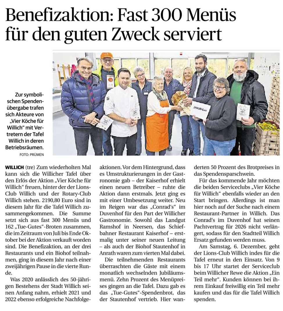 Niersia-Weihnachtstombola zugunsten der Tafel |